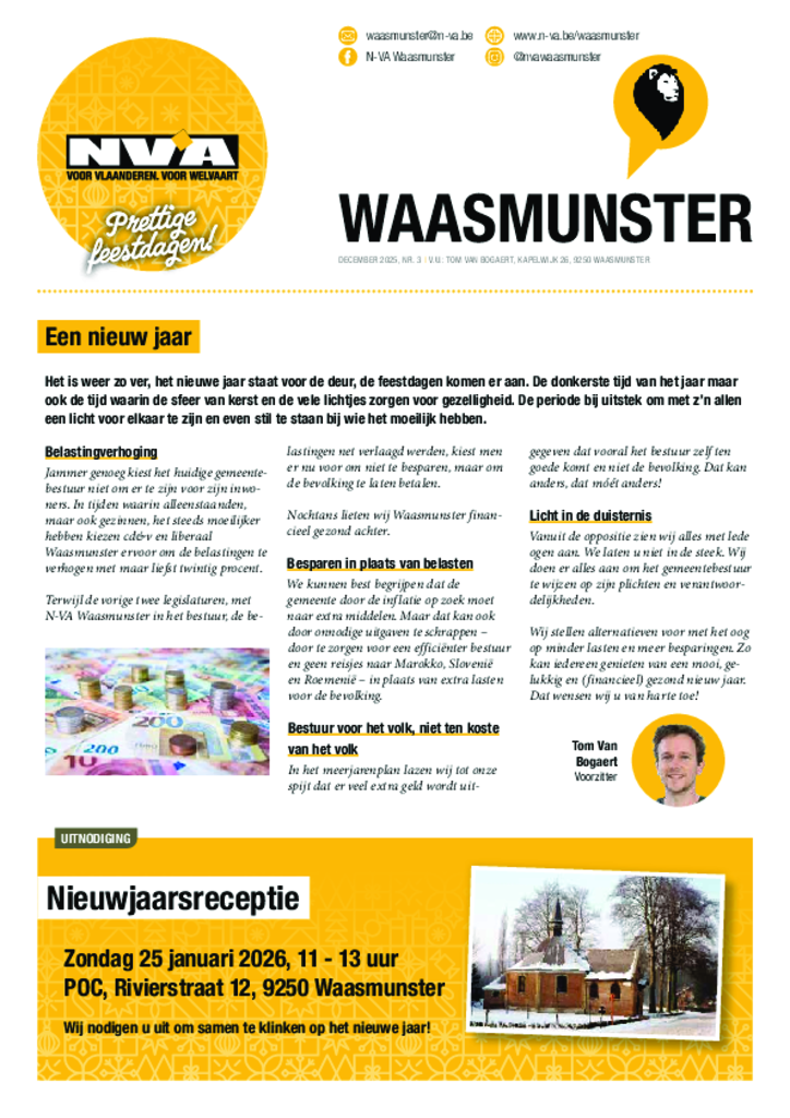 N-VA Waasmunster stemde als enige partij voor een verlaging van de zitpenning om op die manier meer te investeren in veiligheid. 22 januari 2025